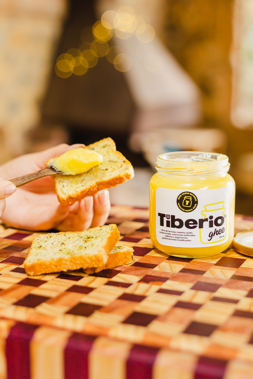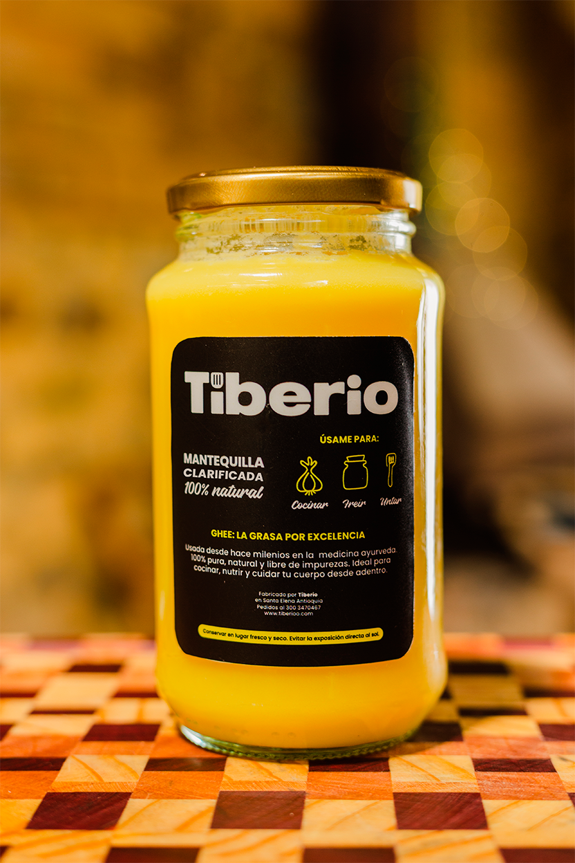 Tiberio Ghee es la alternativa pura, natural y deliciosa para quienes buscan una vida más sana y una cocina consciente. Nuestra Mantequilla Clarificada es elaborada bajo procesos artesanales que eliminan por completo la lactosa, caseína, agua e impurezas, garantizando una grasa 100% saludable.